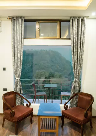 The rooms are beautiful, clean and spacious. The balcony overlooks the hills and makes a great place to sit and sip a cup of tea. The resort has an all vegetarian restaurant which is quite popular. The food at the restaurant is delicious. The vegetarian restaurant shuts at 7.30 pm so one has to plan accordingly if one wants to dine there. Post 7.30 one can get a vegetarian meal from their other restaurant which serves non veg food as well. It's a great place to stay no doubt.